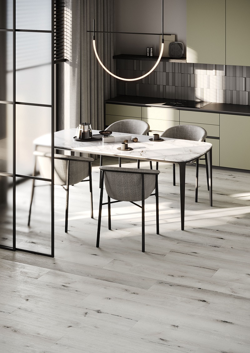 Сначала я думал об обычной плитке, однако в процессе подумал о кварцевом ламинате. Заказать решил в компании Fargo, так как много хорошего о них слышал да и бренд известен на всю Россию. Выбрал Fargo Comfort. Хочу сказать, что совсем не разочарован кварцевым ламинатом, укладывается он легко и быстро, по нему приятно ходить, а кухня визуально стала выглядеть еще лучше.