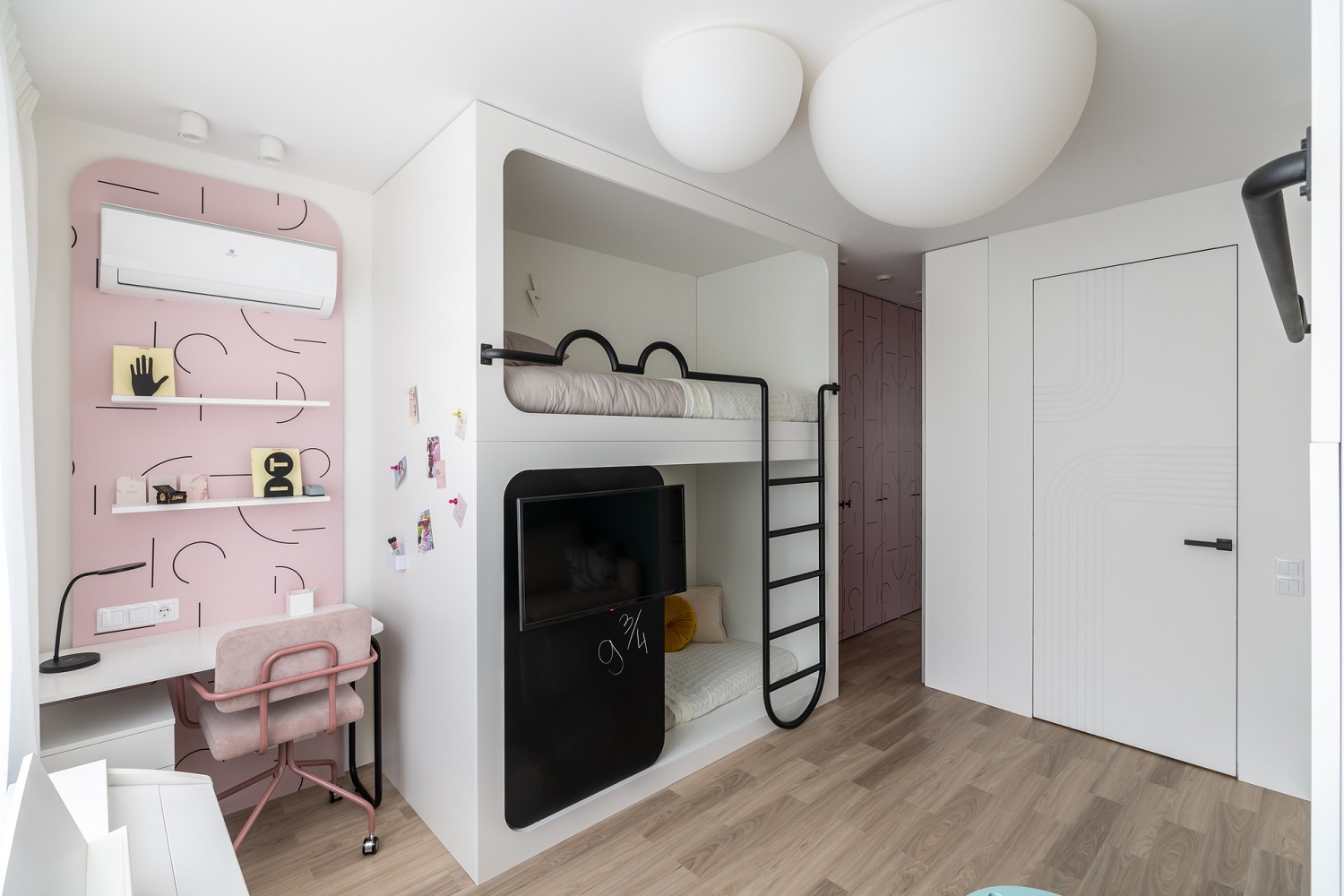 В детской применили интерьерную магию: разделили пространство на спальню, рабочую зону и гардеробную. Кстати, чулан, в котором жил Гарри Поттер, и знаменитые очки здесь тоже появились.
